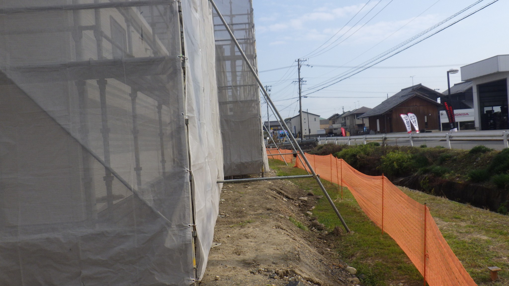 ・サイディング工事・・・建物の外壁にサイディング(外壁材のパネル・防水シート)を張る作業です。